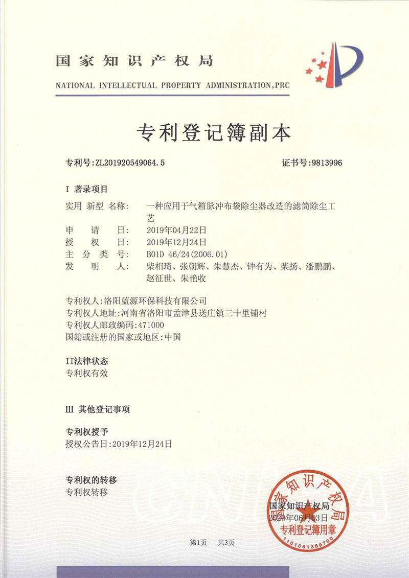專利:一種應(yīng)用于氣箱脈沖布袋除塵器改造的濾筒除塵工藝 時(shí)間: 2020-08-01 00:00:00 來(lái)源:洛陽(yáng)藍(lán)源環(huán)??萍加邢薰?/h4>