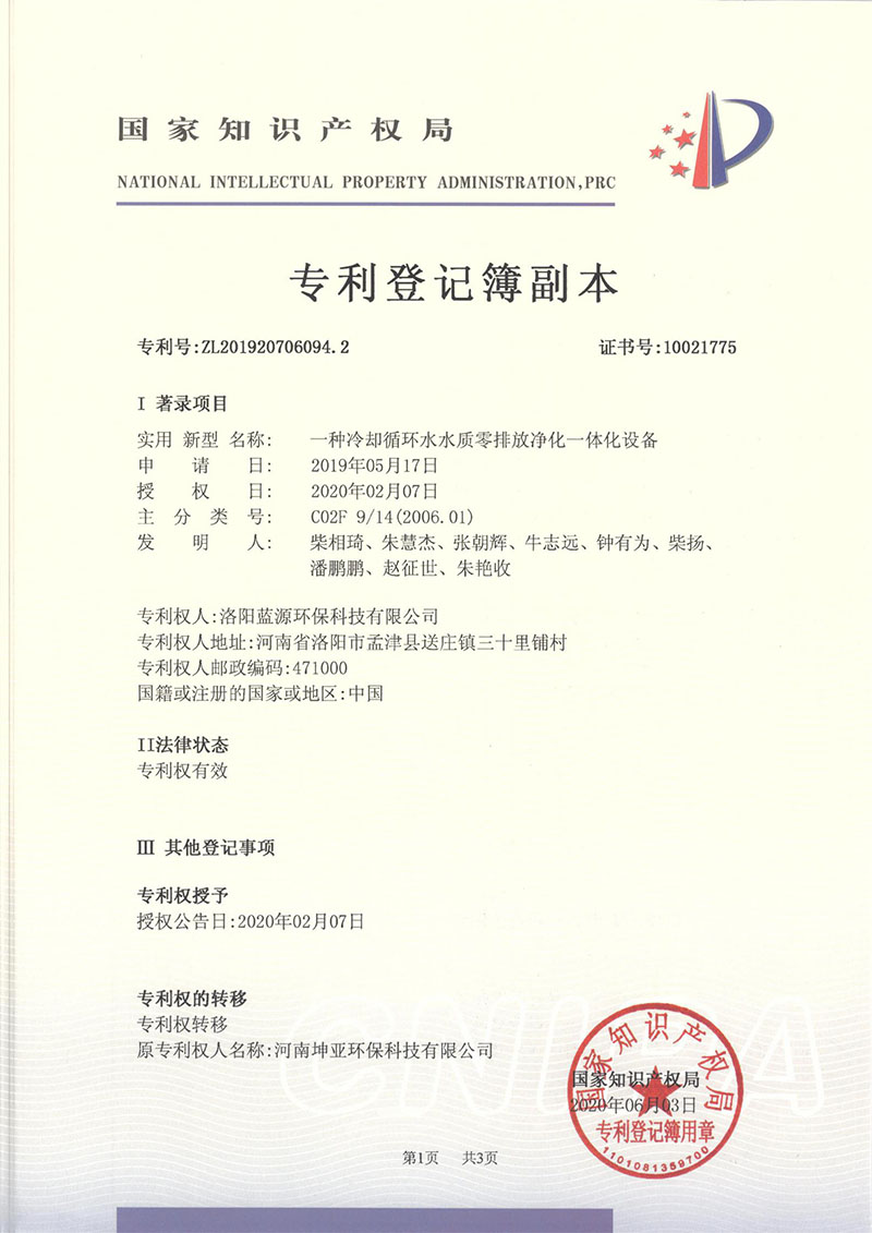 專利:一種冷卻循環(huán)水水質(zhì)零排放凈化一體化設(shè)備